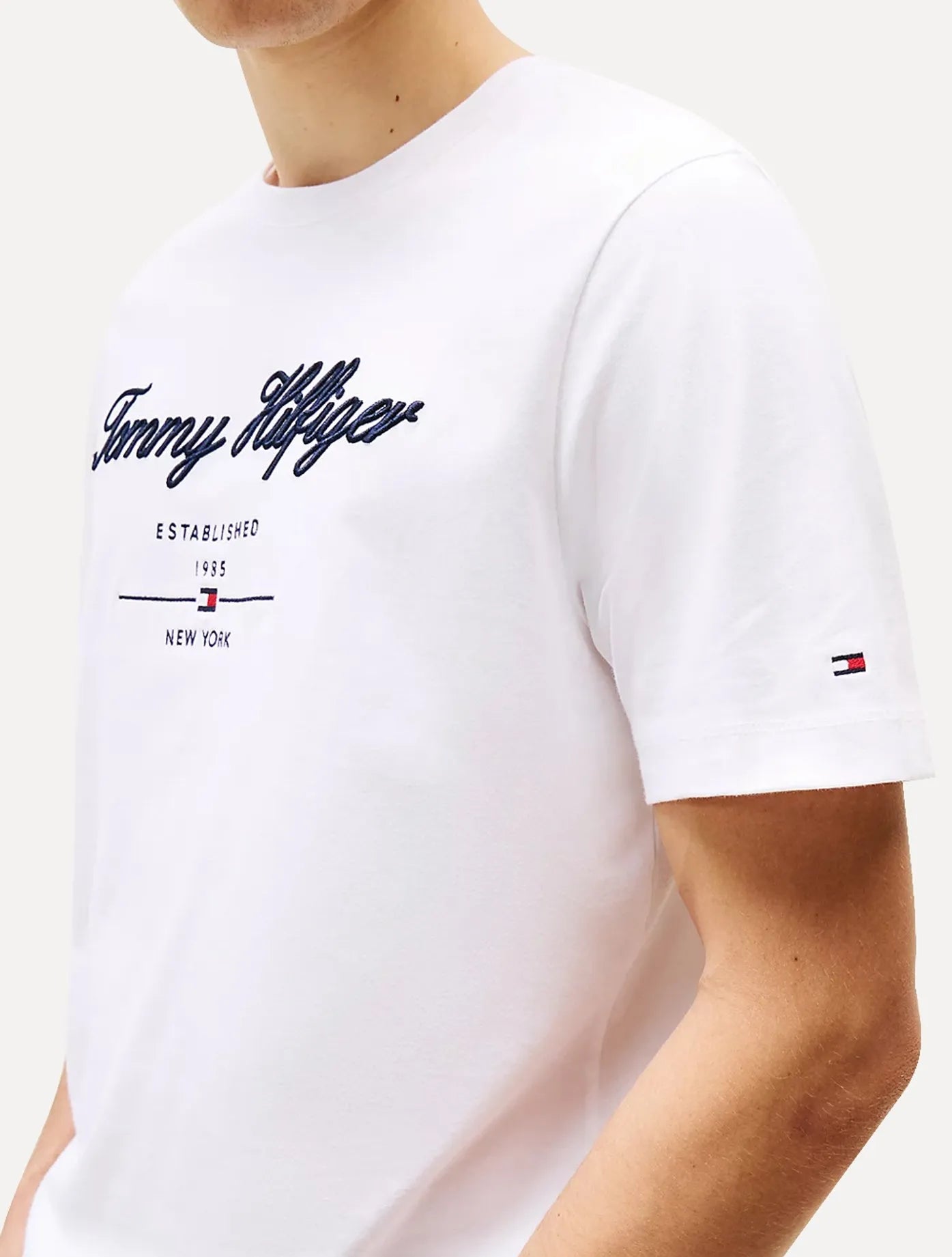 Una camiseta casual con el logo "Tommy Hilfiger" bordado en el pecho y el detalle "Est. 1985 New York". Confeccionada en suave algodón, combina comodidad con un estilo esencial.